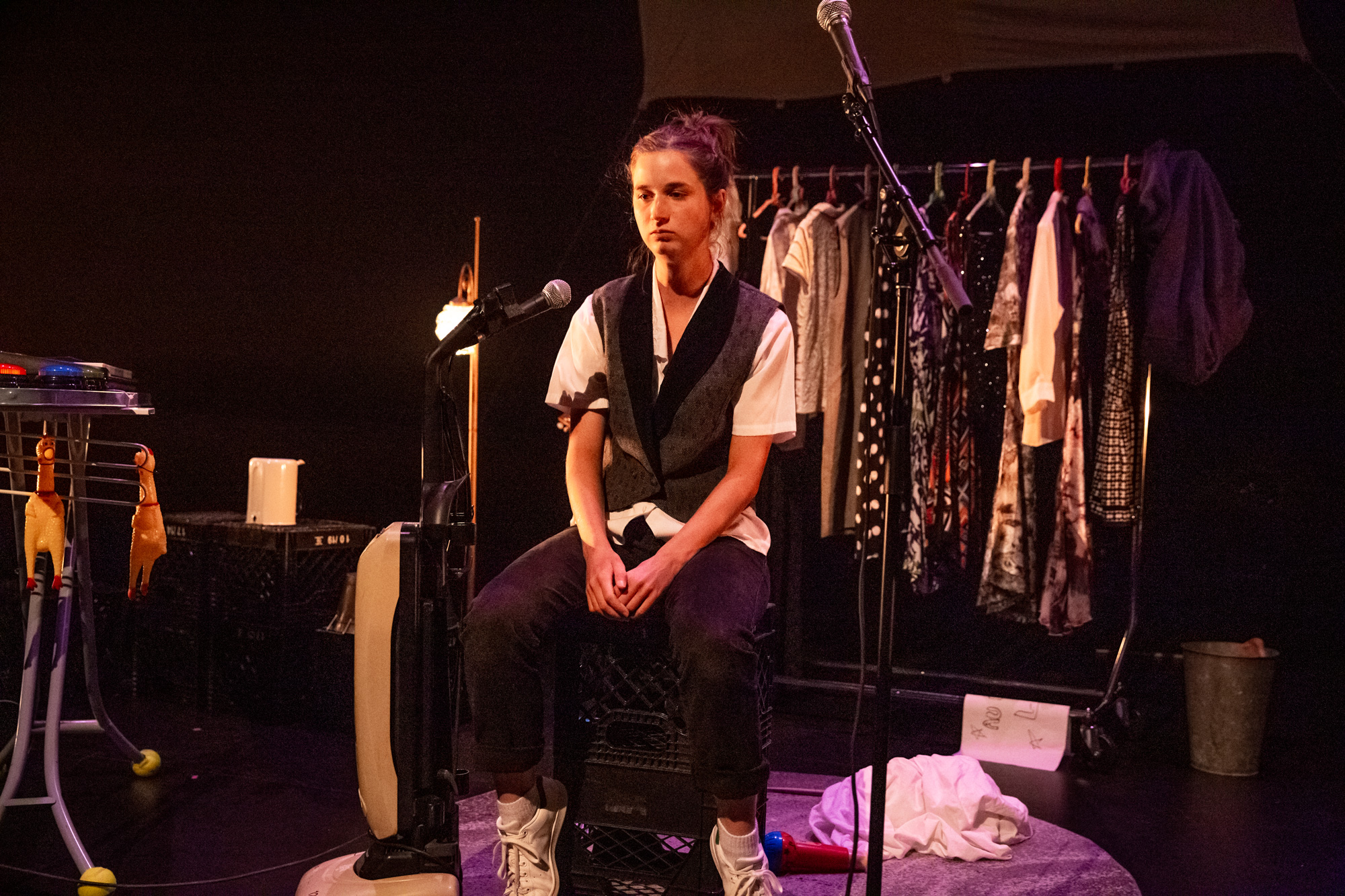 Pour Maxime, le 23 octobre sera à jamais baptisé : « jour zéro ». C’est le jour où tout a basculé. Le jour où les yeux de son père se sont transformés en robinets. Au jour zéro, on lui dit : « T’as perdu ta mère. » On lui dit : « Ta mère est partie. » On lui dit : « Ta mère te regarde des étoiles. » On lui dit toutes sortes de mots pour parler de l’absence de sa mère, mais on ne lui dit jamais le mot qui commence en « M ». Aujourd’hui Maxime brise le silence en retraçant, avec son public, les heures, les jours et les semaines qui ont suivi la mort de sa mère. Écrit par l’entremise d’une collecte de témoignages citoyens, Bon voyage ? allie fiction et théâtre documentaire pour parler, avec douceur et humour, des morts que nous avons aimés et réfléchir collectivement à la manière dont le deuil peut être apprivoisé.